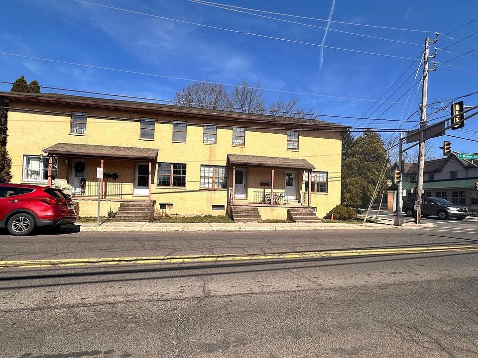 2 BR, 1 BA home for rent across from The Perk Restaurant in Perkasie. Property has off street parking, a separate entrance for each unit, small back yard, eat in kitchen, living room, a full basement plus an attic for additional storage. Tenant pays electric (heat) and trash. Owner pays water/ sewer. Tenant responsible for snow removal on sidewalk in front of property. Washer/ dryer hookup is currently in the kitchen but can be put back in the basement. Home size is approximate.