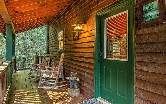Formerly an active rental cabin, Treetops is located in a private wooded setting in the desirable Aska Adventure Area. You will have deeded access to the Toccoa River and be just minutes from Lake Blue Ridge and several hiking trails. The cabin is perched perfectly on a hillside among the trees! It's nicely furnished with two levels of living space. The main level features a great room with kitchen, dining and a cozy living area with a flat river stone fireplace as your focal point. Next to the fireplace is one of the four TVs this cabin has to offer. There is one bedroom on the main with a queen bed and full bath. The back porch off the main level is perfect for enjoying morning coffee in the fresh mountain air. Take a stroll up the stairs inside to find an open loft with king bed, tv and full bath. Just off the loft is a private room perfect for a tv room, reading or even a third sleeping area. There are two staircases on the exterior of the home that will lead you to the large, covered porch boasting a hot tub and 4th wall mounted tv! Enjoy movies, watch your favorite games or set the mood with music - all from the comfort of the hot tub! This porch also has an outdoor dining table for four and two rocking chairs. This is the perfect place to relax while enveloped by the natural forest of oak trees, large hemlocks, white pines and mountain laurel. There's also a small fire pit with seating for four in the parking area. Extremely private and well-maintained property. Completely turnkey except for a few personal items. Seller is doing some work on the deck.