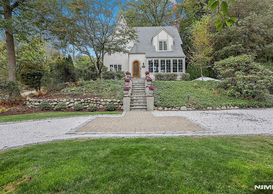 Full of charm and warmth, this beautifully updated French Tudor in the heart of Ramsey blends timeless appeal with modern comfort. Set on a tiered property with a circular driveway, lush greenery, and professional lighting in the front, side, and back yards, this early 1900s home welcomes you with its graceful stucco facade and storybook style. Inside, hardwood floors, a cozy living room with a gas fireplace, and French doors opening to a peaceful garden create an inviting atmosphere. The bright sunroom, framed by new Andersen windows and its own French door, is the perfect place to relax. A formal dining room flows into the renovated 2021 kitchen featuring quartzite countertops, stainless steel appliances, and ample cabinet space. Upstairs are three comfortable bedrooms and a stylish full bath renovated in 2023. The third floor offers flexible space for an office, studio, or extra bedroom with backyard views. The finished basement includes a second fireplace, laundry, storage, and potential for another bath. Outdoors, enjoy a large stone patio with fireplace, an upper yard with fire pit and seating, and a hidden “secret garden†with fruit trees, a grapevine-covered gazebo, and a charming she-shed/greenhouse with half bath. Recent updates include new plumbing, electric, Andersen windows, and a newer roof. With a circular driveway, attached garage, and proximity to Finch Park, downtown Ramsey, and shopping, this home perfectly combines privacy, comfort, and timeless charm.