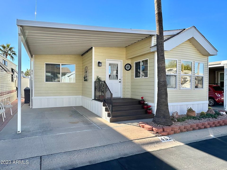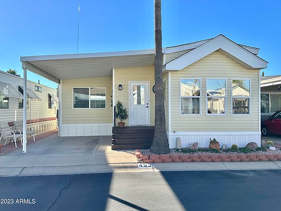 THIS GEM IS A MUST SEE! PERFECTLY SITUATED NORTH FACING W/ MAGINFICENT MOUNTAIN VIEWS! GRAND CURB APPEAL, WELL APPOINTED & METICULOUSLY CARED FOR! WELCOME to this TURN KEY 1 bed, 1.5 bath Arizona room home! BEAUTIFUL entry door welcomes you to this SPACIOUS well LAYED OUT FLOOR PLAN! EXPANISVE AZ room offering an additional back room that can be used as a 2nd bedroom, hobby area or is perfect for your guests! Stackable washer/dryer & GREAT CLOSET SPACE throughout! GORGEOUS WOOD LOOK LAMINATE flooring, NEUTRAL interior colors, FULLY FURNISHED w/ QUALITY EVERYTHING! DREAMLIKE kitchen w/ FULL SIZE STOVE, GREAT COUNTER SPACE, QUALITY CABINETRY & A HUGE PANTRY! WRAP around display cabinets provides even more storage space & makes for a great buffet area! ENJOY your MOUNTAIN views from your GENEROUS SIZED FRONT LIVING SPACE! PERFECT entertainer's dream home! Nice bedroom w/ mirrored closet & ample drawers! QUEEN SIZE LIFT & STORE bed makes for great extra storage space. COMPLETE w/ ROOMY bathrooms & plenty of vanity area! SO MANY DELIGHTFUL amenities await you in this SPOTLESS home! NEW ROOF 2YRS ago , AZ ROOM ADDED IN 2018, FRESHLY PAINTED EXTERIOR IN 2018, DUAL PANE WINDOWS great for energy efficiency, SUNSCREENS & NEW 40 gallon HOT WATER HEATER in 2018! UPGRADED TO THE MAX. Come live the lifestyle you deserve in this REMARKABLE 55+RESORT where you OWN THE LAND...OWN THE FUN! TONS OF amazing activities for your enjoyment! PERFECT SUNNY ESCAPE! what are you waiting for?