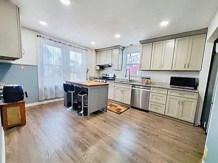 This beautifully renovated first-floor apartment offers 3 bedrooms and 2 bathrooms, combining modern style with convenience. The spacious layout features a formal dining room, an eat-in kitchen with granite countertops, brand-new cabinets, and stainless steel appliances. The unit includes a washer and dryer for added convenience.Located in the desirable area of West Revere, this apartment provides quick access to downtown Boston, Logan Airport, and major highways. Enjoy the new luxury vinyl flooring, abundant natural light, and ample off-street parking. Step outside to a shared backyard with a stunning flower and vegetable garden. The property is close to restaurants, delis, shopping centers, and more.