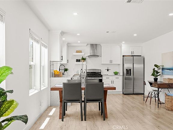 Situated on a corner lot in the sought-after Holy Trinity neighborhood of San Pedro, this updated property offers versatile living with scenic harbor views—and the rare benefit of a detached studio ADU. With a 3-bedroom, 2-bath main home (1,193 sq. ft.) and a 500 sq. ft. guest house with its own kitchen and bath, this residence is designed for flexibility, function, and modern comfort. Step into the main house and enjoy a bright, open-concept layout, where a cozy fireplace anchors the living room and flows seamlessly into the dining area and remodeled kitchen. Quartz countertops, rich wood cabinetry, and stainless steel appliances bring both function and style to the space. The primary suite boasts spacious closets and an ensuite bathroom with stylish tile accents, while the guest bedrooms open directly to the backyard patio—enhancing indoor-outdoor flow. The detached guest house offers approximately 500 sq. ft. of flexible studio space, complete with a private entrance, updated kitchen, and bathroom—ideal for guests, extended family, or a potential rental opportunity (buyer to verify ADU potential with the city). Designed for easy upkeep, the exterior features fresh stucco, new paint, and a fenced cement patio in the backyard. The lush front yard includes new sod, a timed sprinkler system, and fruit trees, while the charming brick front porch provides a perfect spot to relax and enjoy the harbor view. Additional highlights include remodeled bathrooms, a new roof, upgraded electrical panel, central air and heat, a stackable washer and dryer, and a new garage door with automatic opener. Conveniently located near shopping, dining, freeway access, and local amenities, this move-in-ready property offers space, flexibility, and income potential—a rare find in one of San Pedro’s most established neighborhoods.