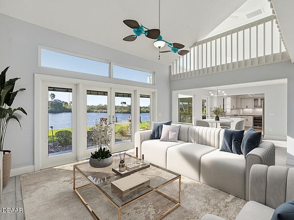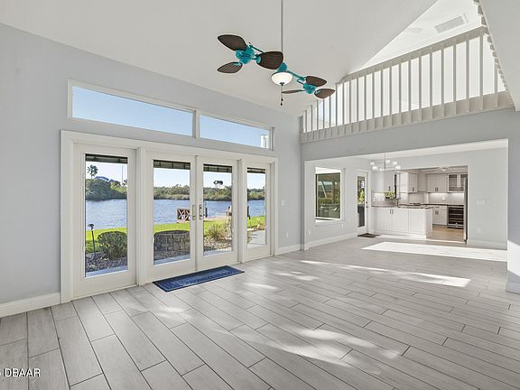 This 3 bedroom, 3 bathroom RIVERFRONT home offers serenity in the highly sought-after neighborhood of Tomoka Estates with access to the Intracoastal Waterway and public boat ramp within walking distance. Extensively remodeled to include a NEW in 2025 roof, water heater, HVAC (both), well pump, and so much more! Nestled on the curve of a quiet dead-end street, this beautifully remodeled home features the perfect blend of privacy, elegance, and waterfront living on nearly half an acre complete with a dock and boat house. Step inside to discover a bright, open-concept layout and soaring ceilings thoughtfully designed for waterfront living with tile flooring throughout the entire bottom floor. The remodeled kitchen is a showstopper, featuring custom cabinetry, gleaming granite countertops, counter seating, reverse osmosis system, and a picture-perfect window above the sink that frames breathtaking views of the Tomoka River. The French doors off the main living area open to the back patio and garden area. Whether you're enjoying a quiet morning coffee or hosting friends, the screened in back porch invites you to unwind and take in the peaceful riverfront scenery especially from the spa. Downstairs, this home boasts ample storage, the third bedroom (currently being used as an office), and a den/study complete with a Murphy Bed - perfect for overnight guests and can easily be turned into a fourth bedroom. Waking up in the primary suite upstairs is a true dream with river views, a large walk-in closet, an additional closet, and a luxurious en-suite bath. Enjoy everything this property has to offer with a bird's eye view from the open-air balcony. New vinyl plank flooring on second floor and stairs. Have peace of mind with the whole home Generac Generator. Outside, mature landscaping and ample yard space create an ideal setting for entertaining, gardening, or simply relaxing and watching the wildlife by the water. Launch your kayak, paddleboard, or boat from your backyard and explore miles of scenic riverway right from home. Square footage received from tax rolls. All information recorded in the MLS intended to be accurate but cannot be guaranteed.