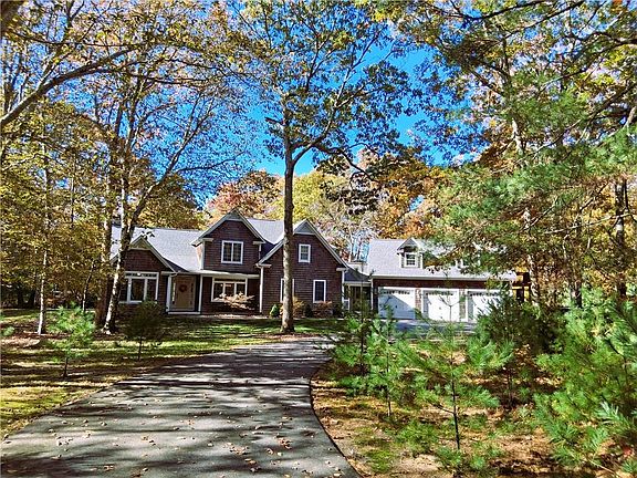 Welcome home to serenity, privacy, and the ultimate “exhale” factor! Nestled on two acres of forest and manicured lawn in sought-after West Greenwich, this custom-designed home offers tranquility at every turn. From the moment you arrive, a sense of calm and privacy abounds. Every room captures the beauty of nature through generous windows and skylights that flood the open-concept interior with natural light. The soaring cathedral ceilings, graceful spiral staircase, and floor-to-ceiling stone fireplace create a grand yet inviting ambiance—perfect for relaxing or entertaining. The kitchen is a true gathering space with granite countertops, deep cabinetry, walk-in pantry, and a cozy breakfast nook flowing seamlessly into the formal dining room. French doors open to a study or home office, ideal for peaceful productivity. The first floor also features a full bath, laundry, and two bedrooms, one with its own private deck. Upstairs, discover a sitting area, an additional bedroom, and a tranquil primary suite with dual walk-in closets, private balcony, and a luxurious en-suite bath. The oversized three-car drive-through garage, large breezeway, and 540 sq ft finished bonus room provide endless versatility. Enjoy recent upgrades including a new roof, skylights, boiler, hybrid water heater, and a year-round Endless Pool E2000 Swim Spa with Covana cover. Surrounded by conservation land, this is your chance to be all settled in for the holidays wrapped in peace, privacy and comfort.