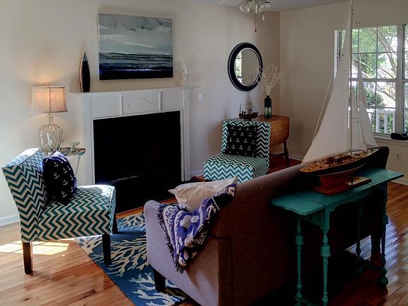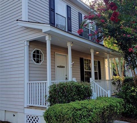 Beautiful, traditional home with full front porch, freshly painted home with wood flooring in family and dining rooms while the eat in kitchen enjoys tile floors. Wood burning fireplace in family room. Master bdrm has trayed ceiling, walk in closet and a spacious master bath with a linen closet. There is a nice, fenced in backyard with a patio and beautiful palm trees. The neighborhood is located minutes from downtown Charleston and Folly Beach. Nice Sidewalks offer a splendid way to meet neighbors or go fishing at the community boat landing and dock. in a lovely neighborhood with sidewalks.
