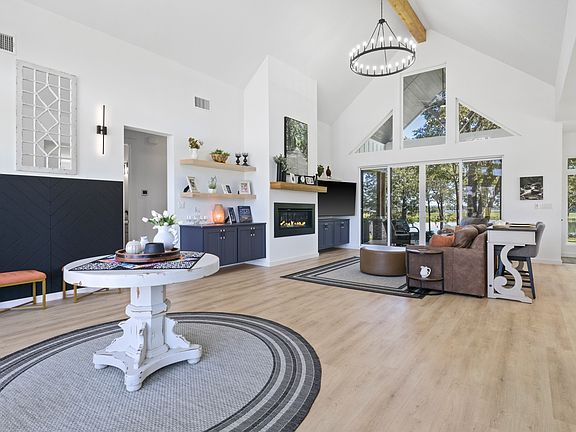 The main residence offers light filled open living space with vaulted ceilings, a gourmet kitchen featuring a large island, butler’s pantry, and breakfast bar, plus a spacious living room with a linear gas fireplace. The private owner’s suite boasts a spa-inspired bath with dual vanities, separate shower, and custom closet system. An additional ensuite guest bedroom and a dedicated office provide both comfort and flexibility.