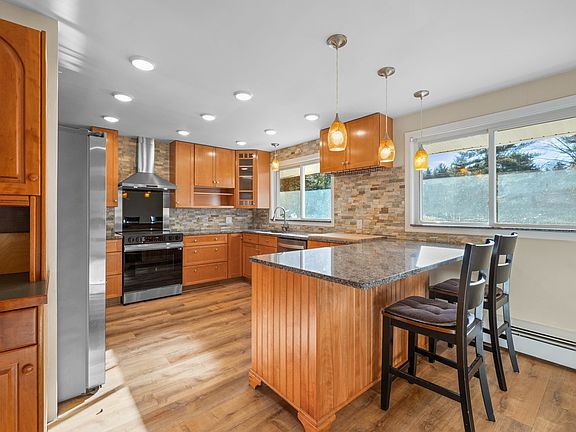 *In-Home Business Opportunity / Single-Level Living* This home offers the perfect blend of comfort, space, and convenience. Inside, walk into a surprisingly spacious interior, featuring cathedral ceilings, and a welcoming wood-toned atmosphere throughout. Designed for easy single-level living, the home offers 3 bedrooms and 2 finished bathrooms, with a third bathroom in the basement that is nearly complete. The layout flows effortlessly, with an open main living area ideal for gathering and entertaining. The kitchen features modern touches such as: stainless-steel appliances, granite countertops, and custom cabinetry, that make daily living a breeze. A three-season room extends your living space and serves as the perfect spot for relaxing or hosting friends during the warmer months. Outside, enjoy both a front and back patio - the front patio featuring a charming grapevine. The backyard offers a fire pit area and the natural privacy of surrounding trees, giving you a peaceful retreat. Located on Route 101, take advantage of quick access to Bedford’s shopping, dining, schools, commuter routes, and outdoor recreation. The property is also zoned for in-home business use, a valuable advantage for those with solo or small businesses. Additional features include a finished basement, a garage, and a shed for extra storage! Open House Sunday 11-12:30pm.