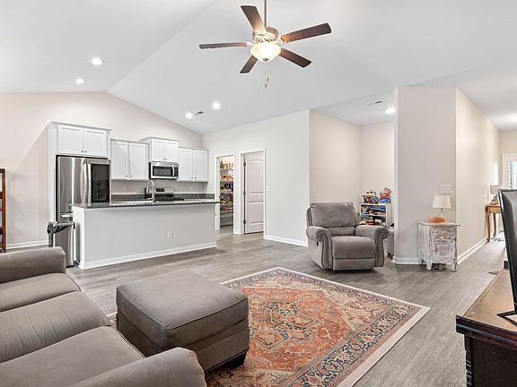 This charming home is perfectly situated just a short golf cart ride to the beach, offering the ultimate coastal lifestyle. Step inside to discover an inviting open floor plan with abundant natural light, stylish finishes, and modern upgrades throughout. The spacious living area flows seamlessly into the kitchen complete with sleek, granite countertops, upgraded farmhouse sink, a gas range, stainless steel appliances, a walk in pantry and ample shaker style cabinet space. The primary suite provides a serene retreat with a walk in closet, natural light and a luxurious en-suite bathroom with a linen closet, oversized walk in shower and extended vanity. Two aditional bedrooms offer comfort and flexibility for guests or a home office. The painted and trimmed garage has floored attic space for storage and a mop sink just outside the laundry room. Enjoy outdoor living at its finest in the private fenced backyard with a covered patio, ceiling fan and retractable drop down screen - ideal for relaxing and enjoying the ocean breeze and natural surroundings. Ocean Palms is a natural gas community and the home includes gas heat and a tankless water heater. The community also offers a refreshing outdoor community pool, just up the street! This home is just minutes from the new Surfside Beach Pier, local dining, attractions, shopping, medical offices, golf coures and more! It is the perfect home for everyday living, your vacation beach house or your next investment property! 453 Rycola Circle is a must-see!