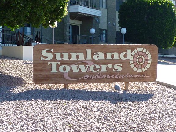 Sunland Towers is a part of Sunland Village, a 55 plus community. Beautiful 3 bedroom 2 bath condo in secure building. Master bedroom has 3/4 bath and walk-in closet. Guest bedroom is located next to updated 3/4 bath. 3rd bedroom makes a nice office or craft room. New dishwasher 8/2023. Large living room looks out onto secure balcony that has decorative security door, sunscreen and tinting. Formal dining area. HVAC new 2020 has air purifier and connected to building chiller. Assigned parking space in garage. Storage closet on same floor and in the garage. Garage access from condo via elevator. Secure garage. Lobby entrance with security door to hallway. Sewer, water, trash, common area maint., master building insurance ,exterior building and roof maint included. NO PETS ALLOWED.
