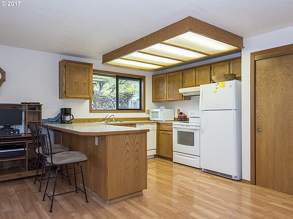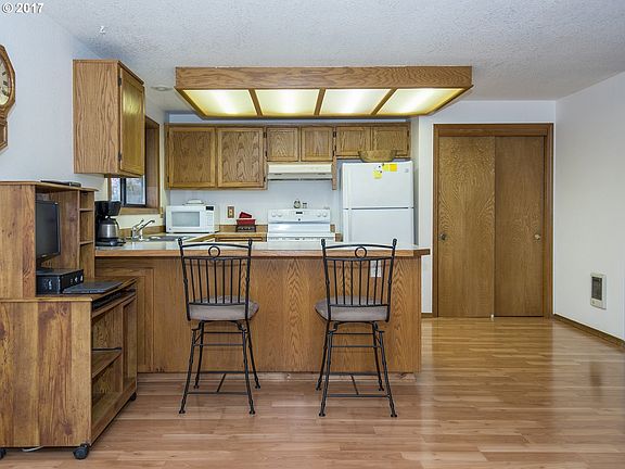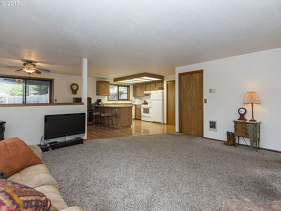 Very well maintained and updated home is move-in ready. Great room floor plan with the living area at the back of the house. Large kitchen with eating bar, lots of counter space. Pellet stove keeps the house toasting. Garage and parking off private drive in back. Beautiful yard, garden area and shed. New roof, fresh paint and new carpet. Last 4 photos show the summer bloom!