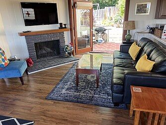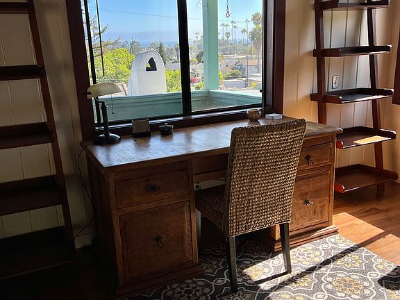 Fully furnished short term rental month to month, current availability is October 17th 2025. Fully furnished month to month rental. Open airy cabin feel, private, plenty of outdoor space, mountains behind the property feels rural, yet close to downtown. Ocean, city View from all front facing windows. Fireplace, smart TV's , office desk area with views, good size bedroom with very cozy king bed, very private and quiet. High top dinning table inside, also front & back balcony sitting areas. Only ONE onsite parking space provided.