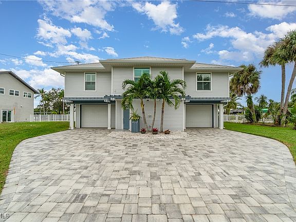 Welcome home to this prime Gulf access location, 3-bedroom, 2-bath stilt-built home is waiting for you! Only minutes out to the Caloosahatchee River and the Gulf. Close proximity to Cape Coral and downtown Fort Myers. The main living area is elevated with terrific views of the water and heated saltwater pool. The lower level features a bonus/flex area of approximately 400 S.F. and two separate garages (10.5'x22') accommodating all of your storage needs. The covered boat lift is rated at 12,000 lbs. The home has impact hurricane windows and doors, metal roof, and newer appliances. Tucked away on a quiet and private cul-de-sac. Schedule your private showing today!