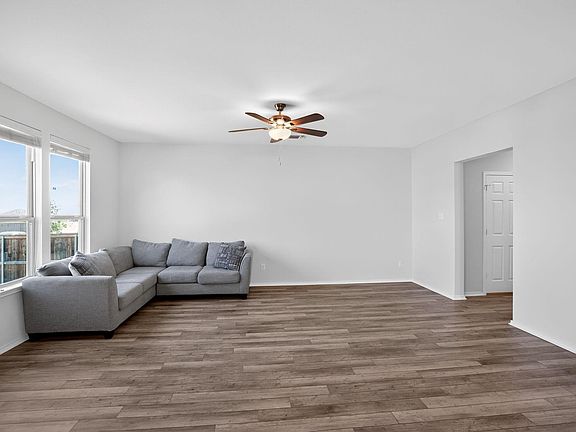 Sitting on a spacious corner lot in the Rio Lobo community, this 3-bedroom, 2.5-bath home offers the perfect mix of space, comfort, and convenience. Downstairs, you'll find a bright and open living area along with a dedicated office great for working from home or extra flex space. The kitchen comes equipped with white cabinets, granite countertops, stainless steel appliances, a walk-in pantry, and bonus storage under the stairs. Upstairs opens to a large second living/family space, perfect for relaxing or entertaining. The primary suite features a walk-in closet and full bath, and another bedroom upstairs includes its own walk-in closet as well. Natural light fills every room. The backyard is great for pets or weekend hangouts, with sprinklers front and back. Two-car garage included. Pets ok; limit two; no weight restriction.