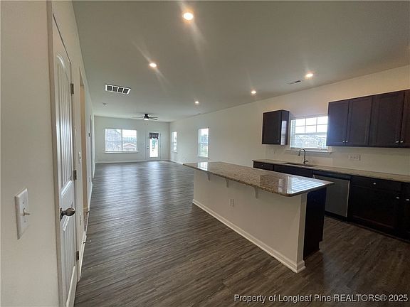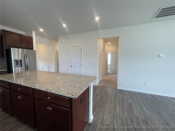MOVE IN READY HOME. This lovely 3 Bedroom 2 bathroom Ranch home located in 78 South in Lee County. This 2022 home sits on a large corner lot and has a double car garage and rear covered patio. This home features a large open plan. The Eat in kitchen has granite counters, a center island, lots of cabinets and stainless steel appliances. The living room has vinyl plank floors a ceiling fan and access to the rear porch. The owners suite has carpet in the bedroom, a walk in closet, and bathroom with a garden tub and private potty area. You will find 2 more bedrooms with carpet and blinds and a laundry room. 78 South is a HOA community deed restrictions apply.