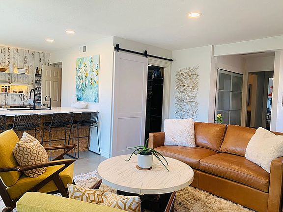 Panoramic Views! Beautiful floor plan! Great room with living/kitchen, 2 BD/2 Bath. Warm wood fireplace. Walk-in pantry closet, spacious attic storage. Furnishings can be negotiated for purchase. Comfortable patio and side grass surrounded by mature trees. Across from open land, unobstructed view of red cliffs. River access with endless miles of biking/walking paths. Walk to Bloomington Country Club and grocery store. Quiet community, yet easy access to freeway and only 10-15 min to downtown St George. Private double driveway. Recently replaced: all windows & exterior doors, flooring, kitchen, Live Edge counter & open shelving concept, SMEG fridge, electric stove, SMEG dishwasher, bathrooms remodeled, infrared sauna, replace 95% plumbing & 90% electrical. Insta hot tankless water heater &