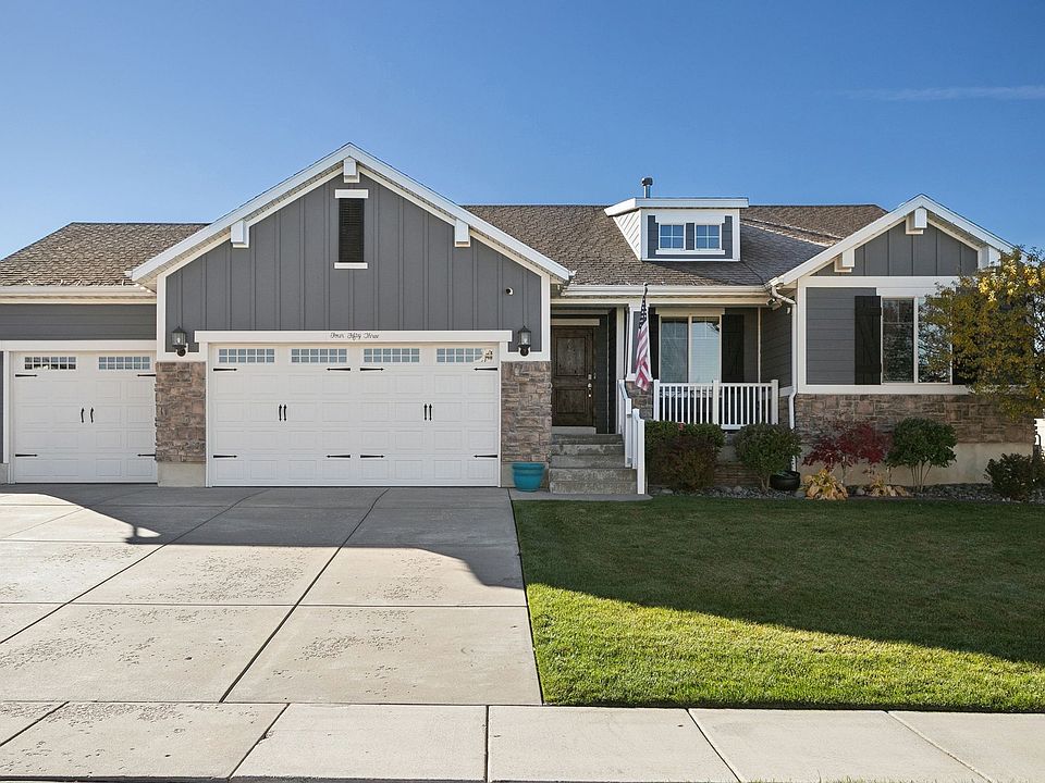 Rv parkingFresh paintEpoxy floorsUpdated ramblerPatio spaceHeated three car garageOutdoor tv