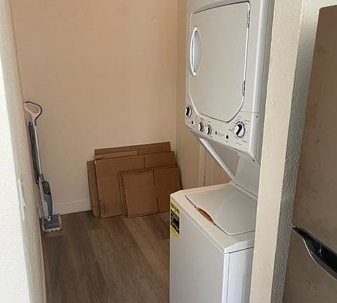 White shaker cabinetsPrivate backyardsLaundry inside each unitVinyl flooring