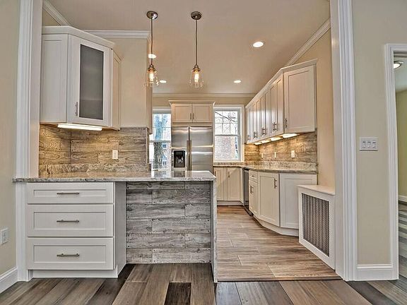 Superbly remodeled from head to toe featuring the finest workmanship and finishings. The open foyer unfolds to a flowing floor plan leading to an open kitchen, dining area and living room. The kitchen features stainless steel appliances, granite counters and a custom seating-workspace or food preparation area and a built in wine cooler for entertaining. The spacious kitchen glows with natural light and recessed LED lighting. The bathroom with glass shower doors and custom tile work is conveniently located next to the in-unit washer and dryer area.Two bright and spacious bedrooms round out this wonderful home. Private storage in the lower level for added convenience. All new windows, cabinets, appliances, updated electrical, plumbing, lighting and wood flooring. Located in a lovely courtyard building near Brookline Village, this unit provides all the conveniences of city living, the C and D line, library's, shops, restaurants, high school and so much more.