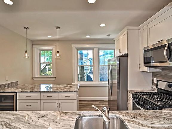 Superbly remodeled from head to toe featuring the finest workmanship and finishings. The open foyer unfolds to a flowing floor plan leading to an open kitchen, dining room and living area. The kitchen features stainless steel appliances, a breathtaking center island with seating, room for food preparation and a built in wine cooler for entertaining. The spacious kitchen glows with custom lighting and beautiful marble countertops. The bathroom with glass shower doors and custom tile work is conveniently located next to the in-unit washer and dryer area.The bright and spacious bedrooms round out this wonderful home. Private storage in the lower level for added convenience. All new windows, cabinets, appliances, updated electrical, plumbing, lighting and wood flooring. Located in a lovely courtyard building near Brookline Village, this unit provides all the conveniences of city living, the C and D line, public library, shops, restaurants, the public high school and so much more.