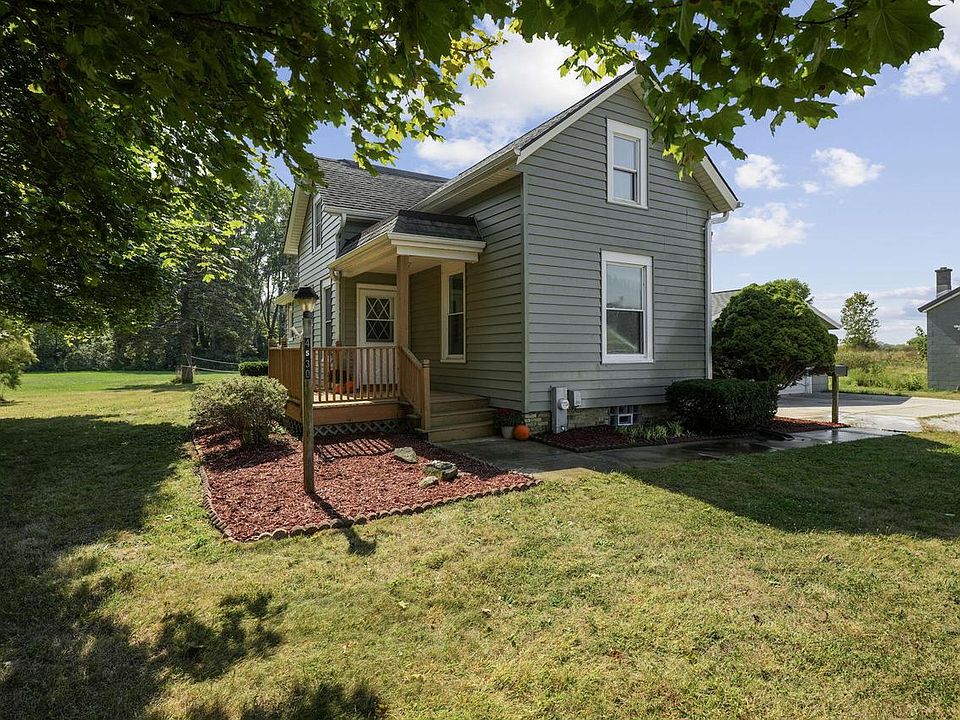 This 3+ bedroom 2 full bath 1890 farmhouse is situated on over 9 acres of country living within 2 miles of lake Michigan and close proximity to many amenities. Main floor hosts huge family rm, updated eat in kitchen, fully updated bath, dining rm/flex space and 2 bdrms. Floor 2 has walk through bdrms with fully renovated bath , (this floor could easily be used as a private master en-suite.)Step outside to your own private nature retreat with private pond and rolling land. There are two 2.5 car garages, + lg concrete block 60x30 pole building perfect for loads of storage or work shop. Horses /live stock allowed on property per Caledonia ( see documents). The perfect opportunity to create your dream hobby farm or personal oasis. So much potential here and room to grow!
