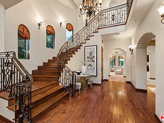 New Price! Stunning Mediterranean Estate with great scale and every amenity one can hope for! Grand entry leads to a striking living room with one of 7 fireplaces. Romantic internal courtyard with fireplace perfect for alfresco dining. Large formal dining room. Gourmet kitchen, with walk-in pantry, breakfast room, and great room both of which include a fireplace. Movie theatre, den and temperature-controlled wine room. Housekeepers room with bath, laundry room and powder room complete the main level. Upstairs features a sensational primary suite with 2-fireplaces, sitting area, balcony, large marble bath with steam shower, dual walk-in custom closets and yoga/gym room. Private office. There are three additional bedroom suites surrounding a lounge area. Magnificent entertainers backyard with waterfall pool and spa, lighted sports court and outdoor covered logia with bath, fireplace, TV and kitchen. 3-car garage with large motor court. Gated with security cameras for maximum privacy. Generac emergency Generator. Located in the coveted Lanai School district. Beautiful living!