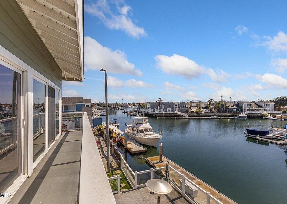 Rare corner Mandalay Bay boat dock home with 62' boat easement and views from every room! This 4 bedroom, 3 bath home with 2917 sq ft has amazing panoramic views and a large south facing deck for summer barbeques. This remodeled home has a fabulous floorplan with a main level bedroom and full bath. This is one of the larger homes in the area with custom built-ins throughout which have been thoughtfully placed for organization and tons of storage. Lovely latch-lock side windows surround the front door, and there are a few thoughtfully placed pocket doors, sky lights, and crown molding. Gorgeous hardwood floors throughout except the main level bedroom currently being used as an office has carpet. The Kitchen is spacious and ideal for entertaining with white bead board cabinets, granite counters, white appliances, sit at breakfast counter, and is open to the Dining Room and Living Room areas. There is central a/c on the second floor and has the piping, electrical and ducting for a/c on the first floor. Upstairs the Master Suite is huge with jetted tub bath and separate shower ensuite, wall-to-wall sliding glass doors to forever views and a wrap-around balcony! Third full bath and another deck upstairs are shared by two colorful guest bedrooms with more custom built-ins. Located in the Channel Islands harbor, this home is a boater's dream home with quick access to main channel and out to the islands. There's a small yard for a dog with doggie door to deck. Large 2.5 car garage with built ins and lots of storage. No Mello-Roos and $50 annual HOA. Get on this one quick because it will go fast!!