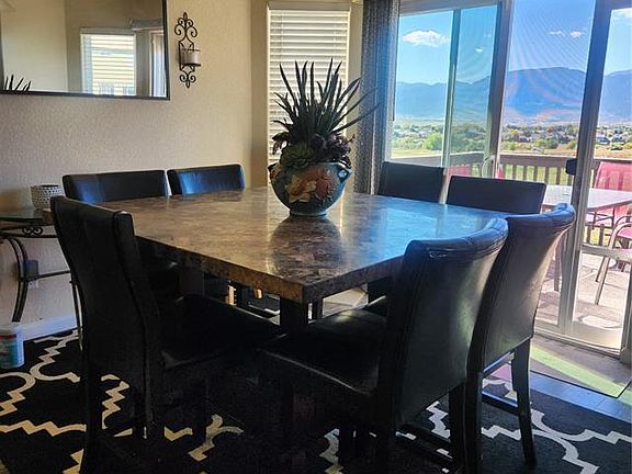 This exquisite 2-story home offers comfort, featuring 5 generously sized bedrooms and an office situated on the main level. With 3.5 bathrooms. A spacious 3122 sq ft layout. As you enter, you'll be greeted by luxurious vinyl plank flooring that extends throughout the main level. The chef’s kitchen stands out with its impressive large island, w/ stunning quartz countertops. The dining area, enhanced by French doors, opens up to a beautifully crafted upper wooded porch, offering a tranquil space to unwind. Equally impressive, a 43 ft x 20 ft concrete patio adorned with an elegant pergola. A concrete pathway runs along the left side of the house, leading to the backyard, while long concrete stairs on the right side also leading to the backyard for event gathering. The Sellers's significant upgrade to the property! Master Bathroom: Enhanced with a rain shower and new tiles. Outdoor Space : Pergola has been tiled. Landscaping : New flower bed for improved curb appeal. Master Closet : Extended for additional storage and organization. Garage : Epoxy floor for durability, plus a keypad for easy access and extra shelving and finished walling. Laundry:Washer and dryer combined unit for spacesaving. Flooring : New carpet throughout the house. Fully finished, Basement:5th bedroom and ample recreational space—ideal for a home theater, game room, gym, or guest accommodation. Attached tandem two-car garage that provides not only parking but also substantial storage options. With its versatile layout, stunning views, and prime location, this property offers an exceptional opportunity that combines functionality with the charm of its natural surroundings. Enjoy breathtaking mountain views that enhance daily picturesque backdrop. Close to Ft Carson, Shriver Air Forcebase and Peterson Air Force base. Few minutes to shopping areas. Fire station. Don’t miss the chance to make this dream home yours—call today!