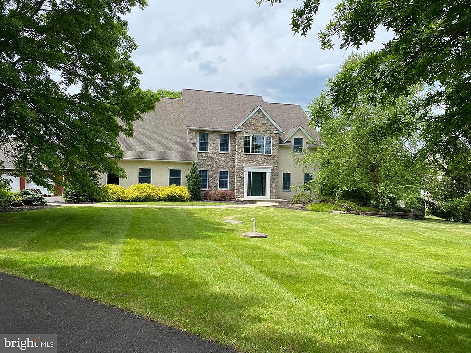 Don't miss this spectacular custom built home on a 2.479 acre lot with amazing sunset views of preserved land, fruit trees, grapevines & wide open skies. The finished on site hardwood floors with radiant heat are warm and welcoming, with plentiful windows providing an abundance of natural light throughout. The formal living room and dining room flank the 2-story foyer. The main floor offers a private study/den/5th bedroom as there is a full bath adjacent. You will find a very spacious custom gourmet kitchen open to the family room with: 32" custom cabinetry, top of the line appliances including Miele, Viking & Thermador, breakfast area, tiled floor with radiant heart, back staircase, butler pantry /coffee bar area, with the laundry/mudroom completing this area. Entertain easily by accessing the maintenance free deck from the family room showcasing a historical designed wood burning stone fireplace (Ben Franklin Design). As you tour you will noticed the fine millwork throughout the house. On the 2nd floor this beautiful home offers 4 bedrooms , 2 full bath along with a bonus room . The main bedroom includes a full luxurious bath, with Jacuzzi tub, shower with dual heads, water closet , double sinks with extra custom cabinetry for an abundance of storage, large walk-in closet & huge sitting area. 2 car attached garage with inside access to laundry room & a detached 26' X 25' garage/ pole barn which can fit: car collection, camper, shop equipment or whatever your dream is! The walk-up and out basement with super high ceilings is ready for you to add your finishing touches. AND if your in the need for more square feet, there is a walk-up attic that is awaiting a custom transformation. All this in the award winning Central Bucks School district, Central Bucks High School East & strategically situated between, Newtown, Doylestown, Peddlers Village & New Hope. Great commute to all commuter destinations. One Year Home Warranty included. Upgrades & improvements include: 2 circuit panels boxes, 2 zone A/C, 10 zones of natural gas heat, natural gas dryer, radiant heat on the entire 1st floor & 9 "˜ ceilings,