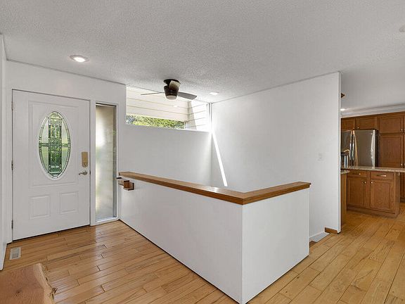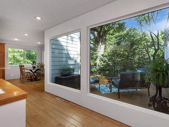 Contemporary in the woods. This jewel shines brightly as you enter a wall of windows that reveals a treed view. Huge deck to enjoy the peace and calm in nature. The main level has hardwood floors, except the LR. Kitchen has granite counters, island, and stainless steel appliances. Primary bedroom has a new enlarged sliding door to the private deck, which is perfect for outdoor meditation. Living room is ideal for entertaining and hanging out. Fully finished walkout lower level has new luxury vinyl plank flooring, 2 bedrooms, full bath, and family room. New vinyl siding and garage door is on order. Please see list of updates these owners have done.