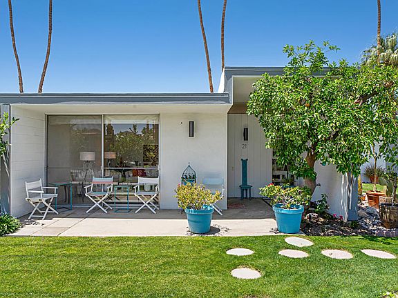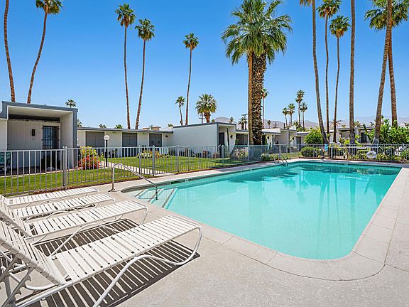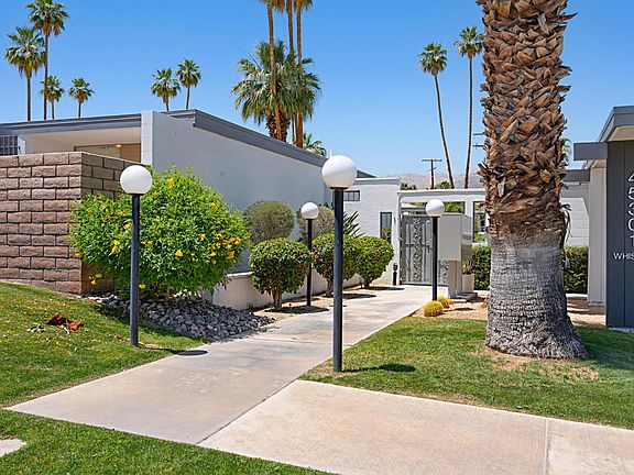 Located in the community of Whispering Sands Villas this incredible mid century (1964) condo is the quintessential ''Palm Springs'' getaway. With only 22 units around a central pool/spa area it is a very private retreat. With two bedrooms and two baths this fully furnished, poolside residence has EVERYTHING you would need for your new Desert get-a-way. Completely TURNKEY, the unit features details like a clerestory window in the kitchen, exposed block wall construction, lots of storage and two outdoor spaces - a private yard space in back and a wonderful front porch for socializing. The primary bedroom has two closets and an attached bath. The complex has incredible mountain views. Of course, this location is unsurpassed within a short distance of the shops and restaurants on El Paseo. All this in a very well-maintained home with in-unit laundry and newer heating/air conditioning. A remarkable opportunity for a very discerning buyer!