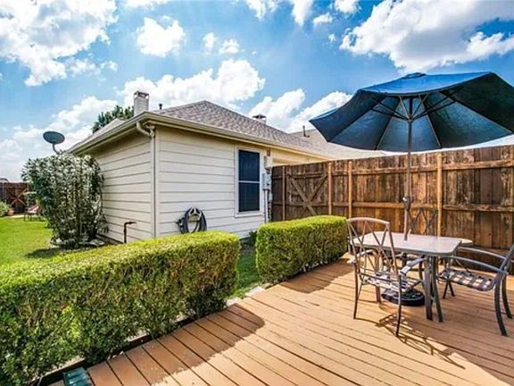 LOCATION! LOCATION! LOCATION! This darling 1 story home is located in the quaint neighborhood of Villages of Preston Glen. It is a short drive to Stonebriar Centre, Shops at Legacy, Legacy West, Hwy. 121, DNT and is also part of the highly rated Frisco ISD. Enjoy mornings sipping coffee on the backyard deck and evenings unwinding on your front porch after a long day . The kitchen includes a built-in desk and breakfast bar overlooking the spacious family room. Relax in the oversized master bedroom with a cozy sitting area. Two additional bedrooms are perfect for a growing family. This well-maintained home with extensive wood floors and plantation shutters throughout is ready and waiting for it's new owner.