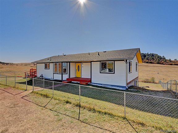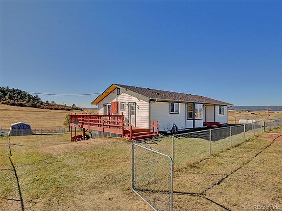 Come and see this beautiful 37.5 acre property in south Douglas county. Gentle rolling fenced pasture, property overlooks miles of mountain views. Walk out rancher! Easy commute for Denver or Colorado Springs. Sellers have rehabbed the home as they have lived there. Almost everything in the home has been changed out while they have been there. Stainless steel appliances including double oven range, dishwasher, microwave, refrigerator. Vaulted ceilings in great room with stove. Remodeled baths! Majority of walk out basement is finished. Domestic well!