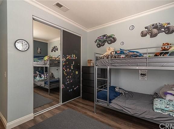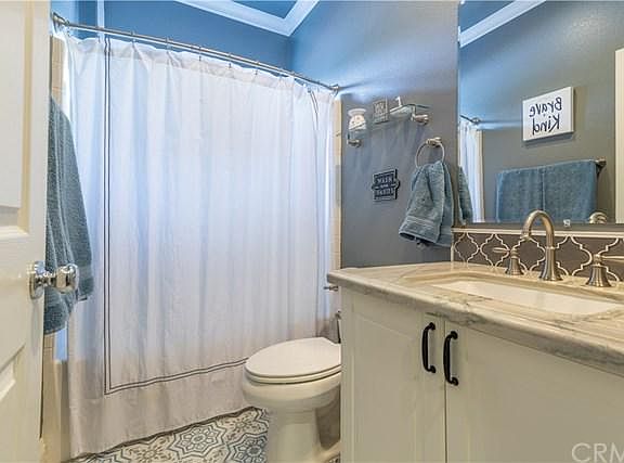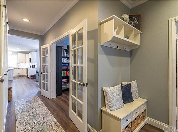 This house is located in the La Rivera gated community. The community has two large pools, two spas, rentable clubhouse, children's playground, and a large green belt. There is an on-site manager during the day and on- site security at night. The interior of this 3 bed 2 bath home has recently been upgraded with high end materials and fashionable patterns and colors; All new cabinetry in the kitchen and bathrooms with soft closing doors and drawers, White Macaubas Quartzite countertops in the kitchen and bathrooms, waterproof wood looking composite flooring through out the house, tile flooring in the bathrooms and laundry room, and crown moulding in every room. In the dining area there is a built in banquette with soft closing drawers for additional storage and seating. The laundry room has tall cabinets with soft closing doors for plenty of storage. The backyard offers raised garden beds with an automatic watering system, ample planter beds, and a generous grass area. There are one plum and four citrus trees on the property, which provide fresh fruit almost year around. Being on the corner lot their are no homes behind the property. This particular one story is unique than other one story homes in the community because of the significantly larger lot and the front access drive and double car garage .
