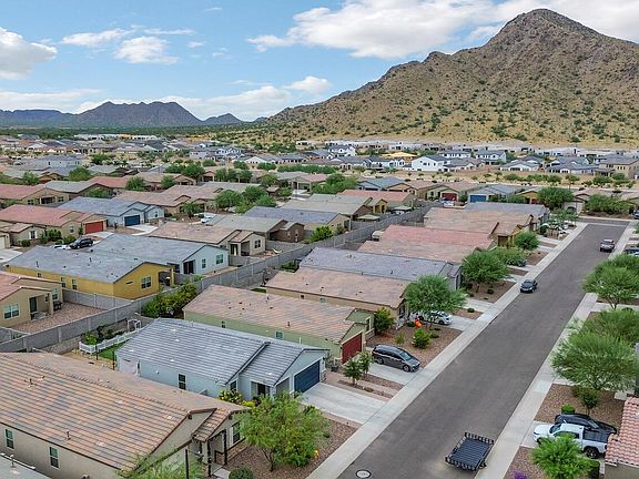 Move-in ready home with open layout, hardwood floors in bedrooms, and upgraded tile in bathrooms and main living areas. Chef's kitchen includes granite countertops, stylish backsplash, and large island, 3 stage water filtration to sink and fridge. Home features 3M window film, insulated attic with spray foam, designer security front door, prewiring in every room for up to 10-gig internet, and prewired power/mounts for Google security cameras and floodlights, smart home water softener unit. Solar-ready AC modifications add efficiency. Backyard offers covered patio with misters, irrigation, garden area, low-voltage accent lighting, high-output designer fixtures with wireless wall remote, and permanent holiday light hooks around the exterior. Front yard highlights upgraded pavers. Finished garage includes sealed flooring and insulated door panels. Enjoy mountain views from front and back with shaded evenings and close access to San Tan Regional Park trails. Room to personalize and expand on the thoughtful upgrades already in place. Home shows pride of ownership with thoughtful upgrades and cared for maintenance throughout.