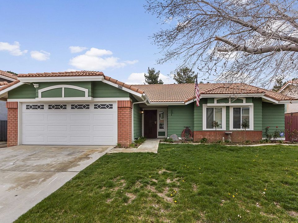 The perfect place to call your home! Situated in West Palmdale is a forever type of home with 3 bedrooms, 2 bathrooms, a 2-car garage and 1,494-SQFt of impeccable living space. Gorgeous flooring runs the home with baseboard moldings, soaring ceilings, central A/C and lovely lighting fixtures throughout. Nestled under a large vaulted ceiling find a large living room with a fireplace and sliding glass doors leading out to the charming patio. The custom chefs kitchen is complete with high end Viking appliances, granite counter-tops and a center Island, perfect for extra cooking space. Bedrooms in the home are spacious, well-illuminated with natural light and offers large closets. A welcoming backyard sets the tone for tranquility and relaxation. Outside presents a covered patio, large mature trees, lush green grass, as well as a large sized pool and a spa!