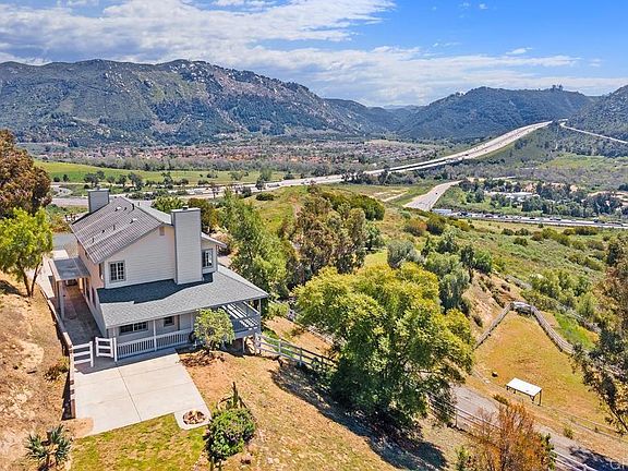 Discover peace and tranquility at this charming 3.5+ acre sanctuary offering stunning 180-degree views of mountains, orchards, and valleys. This 2,236 sqft., 4-bedroom, 2.5-bathroom home features a spacious wrap-around deck, a stylish kitchen with reclaimed wood accents, and a well-designed layout with ample parking and storage. The fenced yard is perfect for horses, livestock, an ADU, or workshop, with two separate driveways providing access to a lower flat paddock and the main entrance. Inside, the home combines rustic ranch living with modern amenities, freshly painted and beautifully appointed. Nestled on a hill, enjoy privacy while being conveniently located near Interstate 15 and Highway 76 for easy access to amenities. Embrace the essence of Fallbrook living in this ideal retreat that you've been dreaming of. Welcome home!