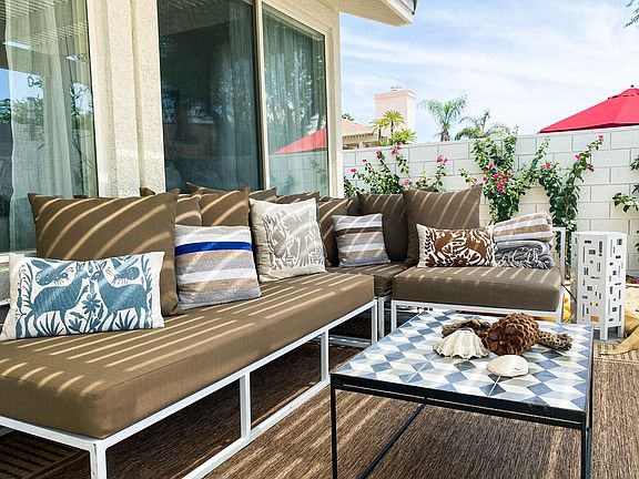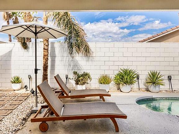 A slice of Baja living in the Coachella Valley. A recently renovated and available fully furnished 4 bedrooms, 2 bath, with a gated backyard, pool, and spa. A perfect retreat to escape for the cold winter months and beyond. Featuring cool touch concrete flooring throughout, new HVAC, and smart thermostats and lighting. Mature, professionally maintained landscaping and a recently renovated saltwater pool and spa. 1. over 100 world-class golf courses including La Quinta Country Club and PGA West that host the annual Desert Classic golf tournament. 2. the Indian Wells Tennis Garden that hosts the annual Masters BNP Paribas Open tennis match. 3. the La Quinta Civic Center hosts the annual La Quinta Arts Festival voted the #1 fine arts festival in the nation. 4. the Empire Polo Club hosts the annual Coachella Music and Arts Festival and Stagecoach Country Music Festival. 5. Old Town La Quinta featuring several eateries, coffee shops, boutiques, salons, Sunday Farmers' Market, and Pedego Electric Bike rental (great fun!). 6. Cove Oasis and Bear Creek Trails are great hiking, as well as paved walking trails. 7. El Paseo (referred to as the "Rodeo Drive" of the desert) has great shopping and restaurants. Agua Caliente, Fantasy Springs and Morongo Casinos, Whole Foods Market, Costco, and major shopping centers with restaurants and shopping. 8. Approx. 30 mins away from Palm Springs Airport. 9.Palm Springs Aerial Tram is 40 min drive. Beautiful views and great hiking up there. 10.Living Desert" in Palm Desert is only 20 min away. Owner Pays for Water and Garbage Collection and weekly landscaping. Tenet pays for Electricity and Gas and Pool Cleaning. No smoking on the property and no amplified sound outside. Quiet time is 10pm to 7am.