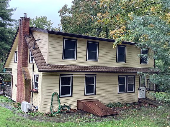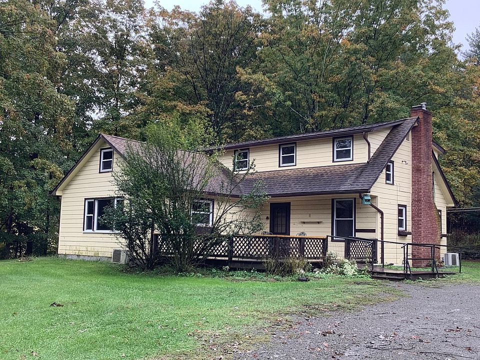 Excellent rental income property or personal home. Currently house is rented with good tenants and income of $1850/month. Offering includes home, 2 ½ car garage, 12x16 storage shed and 18+ wooded acres with stone quarry. Rear acreage could be subdivided for building lots if desired or sold off separately. The setting includes safe quiet country living with great neighbors, a large front yard and fenced garden in rear. Main level is handicap accessible with kitchen and dining rooms, bedroom, full bath, laundry room, sun porch, front deck, and living room with hard wood floor and fire place. Second story has one large and 2 smaller bedrooms, bath and large attic storage. Appliances included are refrigerator, stove, washer, dryer, upright freezer and additional refrigerator in basement. Heat is oil baseboard boiler. Propane cook stove. 2 wall air conditioner units. House was reconditioned one year ago and is in excellent overall condition and sold as is. Only reason for selling is to settle our parent’s estate. Priced to sell so only verifiable financially qualified individuals need apply.
