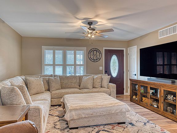 FULLY REMODELED this year, this 3 BR 2 Bath brick home is truly move-in ready. The whole house has been proffessionally painted, but it was not just cosmetic updates, the transformation includes a new roof in Oct 2024. In May 2024 new engineered hardwood floors were added everywhere and all of the interior and exterior doors were replaced along with all ceiling fans and lights. But wait, that's not all, the kitchen was gutted and totally remodeled with all new beautiful cabinets and upscale stainless steel appliances including a gas range with a range hood all tied together with butcher block countertops. This kitchen is perfect! Come check out the rest of the house that has all new floors and doors including stylish sliding doors for the bedroom closets. Out back, you'll find a very large covered back patio and a fully fenced in and shaded yard. There is an attached 2 car garage as well as a large concrete parking area next to the garage with drive-though gates to the back yard. Also, at the far rear of the property you'll find a chicken coop and a large shed (under repair). $515 AHS Home Warranty is provided for Buyer's peace of mind.