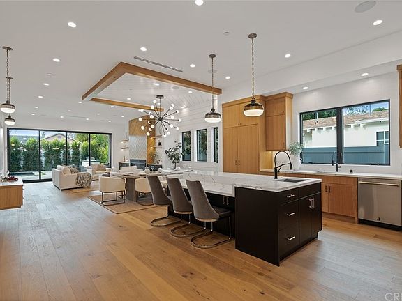 Stunning, new one-story farmhouse with modern flair on a gated lot in the desirable Library Square neighborhood of Sherman Oaks, close to Ventura Blvd. and the Fashion Square. Featuring 4 BR - 4.5 BA in an open floor plan over 2,800 sq. ft., on an over 6,700 sq. ft. lot. Gourmet kitchen features custom cabinetry, stainless-steel appliances, Quartz countertops, center island with bar seating, and dining area with beam design. Family room features custom built-ins and woodwork, fireplace, and sliding glass doors to covered patio. Lush backyard features BBQ area, pool/spa with waterfall, and outdoor pool shower. Master suite features pitched ceiling with beam design, custom accent wall, barn-style doors, master bath with custom tilework, and a spacious walk-in closet. Home is completed by entertainer and designer details, such as custom woodwork and lighting, surround sound speakers, Control 4 smart system, and security system with alarm and cameras.
