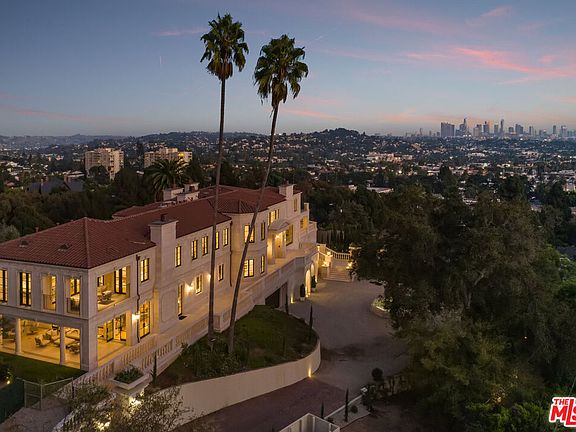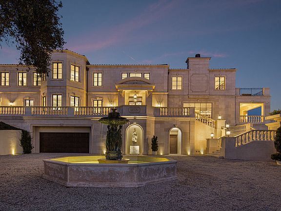 The most incredible deal for a major estate of this caliber. One of the most extraordinary properties available in decades! Renowned architect William Hefner AIA of Studio William Hefner has created a world class Estate with the finest imported materials and design. Gated with a 650-foot driveway leading to a prime 2+/- acre promontory with vast unobstructed city to ocean views. Multi structure private compound includes a newly built Limestone Mediterranean Mansion with over 20,000 square feet on 3 levels. Grand 2 story entry with sweeping staircase and honed marble floors. Gorgeous library and living room w/ imported stone fireplace open to expansive entertainment view terraces. Bar/lounge with gorgeous fireplace and custom wood details for cocktails before dinner in the spectacular formal dining room with hand-painted walls and stone fireplace. The most incredible kitchen family rm with imported fireplace, breakfast rm, center island, a separate prep kitchen along with a covered heated terrace and full outdoor kitchen with every amenity. Ultra luxurious primary suite with sitting room suite all open to incredible view terrace, marble FP, gorgeous his and her baths and large closets. Four additional ensuite bdrms each with unique design elements, large closets a covered terrace 2nd floor laundry and elevator access. Fantastic lower-level features entertaining bar and lounge, beautiful movie theater and game room. Spectacular gym with head on city views, opens to limestone terrace spa and gardens. Steam room, infrared sauna and salon/glam room area. Additional amenities include: Oversized garage with elevator directly servicing all floors. Grand motor court easily accommodates large scale entertaining events. Majestic fountains and sculpture, rose gardens, wrap around lawns, Incredible use of wood details, iron, lighting fixtures, polished stone, tile, imported fireplace mantels and more. 2 separate 1 bedroom guest houses also make great office or creative space. One overlooks the classic pool with fountains and nature paths under mature specimen trees and tranquil nature elements. Don't miss this rare opportunity of extraordinary design and quality. Shown to prequalified buyers only.