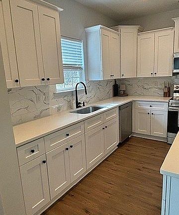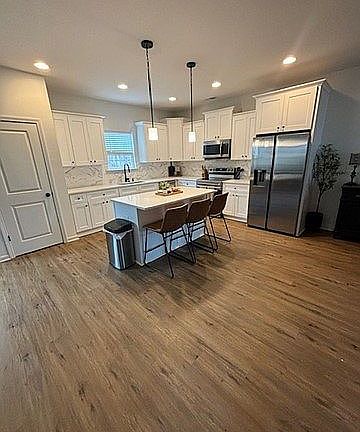 Fenced rear yardKitchen features an islandMatte black fixturesQuartz countertopsSoft-close cabinets