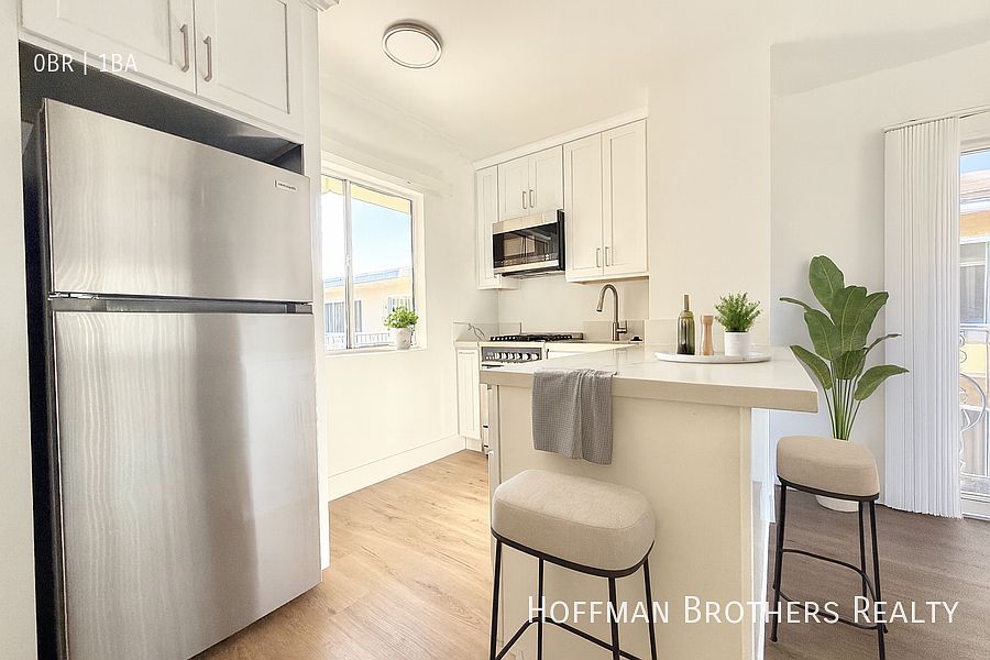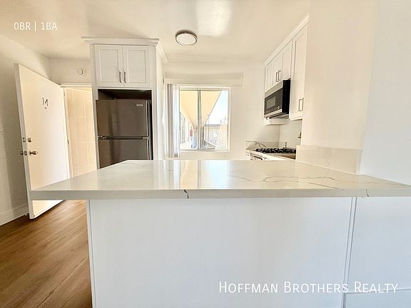 Welcome to this freshly updated studio offering a bright, modern design with a clean and efficient layout. Located on the upper level, the unit features vinyl flooring, quartz countertops, and a polished look throughout. The kitchen comes equipped with a refrigerator, microwave, and gas range stove, along with stainless steel finishes that add a sleek touch.