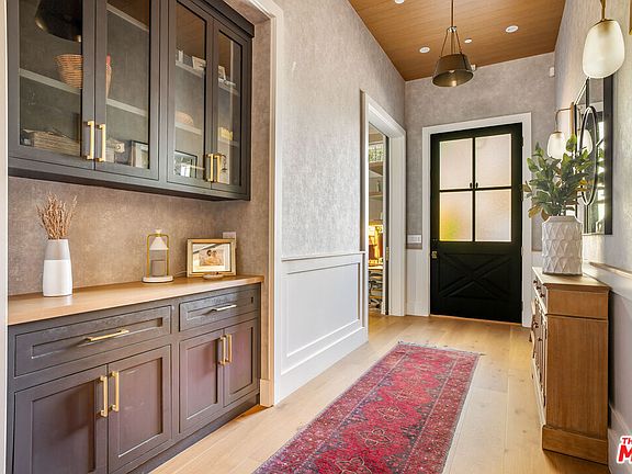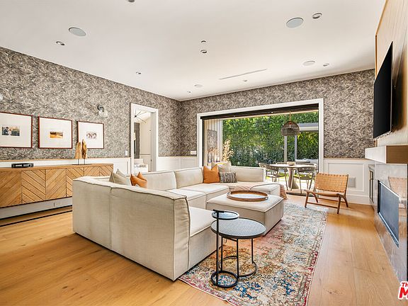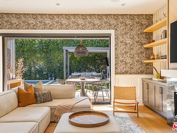 Welcome to this remarkable modern farmhouse in the coveted Sherman Oaks neighborhood. This recently built single-family residence features an eye-catching facade with custom design elements and a warm, welcoming entryway. Offering 4 spacious bedrooms, 4.5 luxurious bathrooms, and 2,956 sf of sophisticated interior space, it is situated on a generous 6,754 sf lot and comes equipped with a Crestron smart home system. Step through the grand front doors to find stunning hardwood floors that guide you through an open-concept floor plan illuminated by natural light. The chef's kitchen, with top-of-the-line appliances and a sprawling single-slab quartzite countertop, overlooks a serene backyard featuring a sparkling saltwater pool and spa perfect for relaxation or hosting gatherings. The covered patios have wall-mounted radiant heaters and a stunning gas fireplace to provide year-round comfort. The primary suite is a sanctuary of its own, offering expansive space and a spa-like ensuite bathroom. With ample walk-in closet space, bespoke wallpaper, built-in cabinetry, and custom wainscoting throughout, this home is as livable as it is unique. The home is equipped with a cutting-edge Tesla solar system, including 3 Powerwalls valued at $60,000, ensuring nearly zero energy costs and up to nine days of emergency power. The two-car garage is climate controlled and finished with epoxy flooring to act as a bonus room or office space. The property's location ensures easy access to local shops, fine dining, and nearby schools. Blending luxury with eco-friendly living, every detail in this modern oasis is designed to offer unparalleled comfort and style!