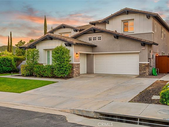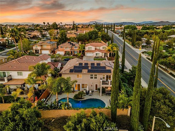 **Entertainer’s Dream Home with Private Pool, Paid-Off Solar & Backyard Paradise***This stunning Morgan Hill home is the perfect blend of designer elegance, modern comfort, and entertainer’s luxury. From the moment you walk in, you’ll be captivated by the light-filled open floor plan, custom plantation shutters throughout, and beautiful window and walkway casings that add a touch of refined sophistication to every room. Stylish engineered hardwood flooring sets the tone, complemented by crown molding, recessed lighting, ceiling fans, and high-end custom lighting fixtures throughout bring an added flare. Featuring a stylish formal living and dining area, The heart of the home is the chef-inspired kitchen, featuring an oversized marble island with seating for four, sleek subway tile backsplash, black granite countertops, crisp white cabinetry, stainless steel appliances, apron-front farmhouse sink, and a walk-in pantry. Flowing seamlessly into the spacious family room with a custom built-in entertainment center and gas fireplace, the layout is ideal for both intimate evenings and lively gatherings. A private office/den enclosed with custom barn doors offers a quiet retreat for work or study. Downstairs also includes a full guest suite with private bath, plus a separate powder room for added convenience. Upstairs, unwind in the luxurious primary suite complete with a cozy retreat area, spa-like bath, expansive walk-in closet, and your own private balcony—perfect for sipping coffee and soaking in the peaceful views with a good book. A large loft offers additional living space, and each secondary bedroom is generously sized—two share a Jack-and-Jill bathroom, while the other features a private ensuite bath. Step outside into your own backyard resort—an entertainer’s dream with a sparkling pool and spa, covered patio area, built-in BBQ island with bar seating, a cozy fire pit, and a separate outdoor fireplace. Multiple seating and conversation areas offer endless options for relaxing or hosting under the stars. Located in the desirable Morgan Hill master-planned community, within walking distance to parks and award-winning schools, and just minutes from local wineries, golf courses, and the renowned Pechanga Resort & Casino. Topped off with a split 3 car garage, a paid-off Tesla solar system and backup battery, this home is as efficient as it is breathtaking.