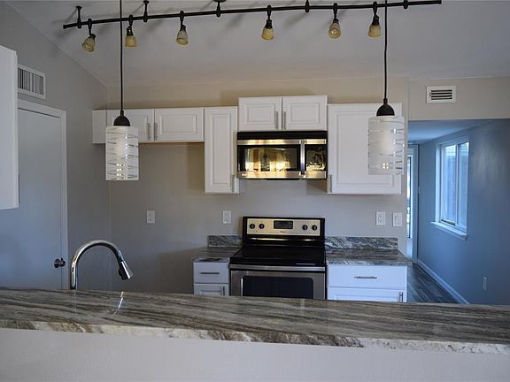 Nicely remodeled half duplex in a popular neighborhood. It features 2 bedrooms and one bath, ceramic tile in living area, hallway, bathroom and kitchen . Carpet in the bedrooms. Fresh paint throughout the property. Granite counter tops in kitchen and bathroom. Stainless steel appliances. Recently installed windows, two sliding glass patio doors and the HVAC system. Easy access to Sam Rayburn tollway.
