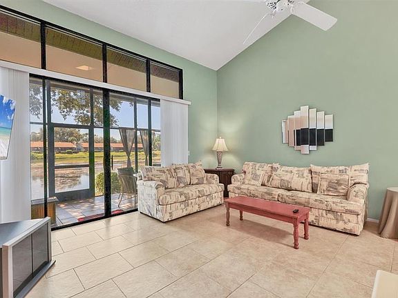 Nestled in the highly desirable 43 West community, this spacious 2-bedroom, 2-bath condo offers 1,304 sq. ft. of comfortable open-concept living with stunning lake views and mature oak trees and landscaping. Make the upstairs bedroom your own private oasis with two spacious walk-in closets, an ensuite bathroom, your own private balcony and a large loft space that's perfect for a sitting area or a home office. Of if you prefer single-level living the downstairs bedroom also features two walk-in closets and a slider to the private front courtyard. Central kitchen includes counter seating and ample storage while the great room boasts vaulted ceilings, a dining area, and access to the screened lanai overlooking peaceful lake views. A one-car garage provides added convenience and storage. Enjoy access to community amenities including a large pool, spa, tennis/pickleball courts, shuffle board, lake boardwalk, and clubhouse, all just minutes to the world-famous Gulf Coast beaches, shopping, dining, and more. HOA also includes cable, WiFi and grounds maintenance. This condo is perfect for year-round living or a seasonal getaway!
