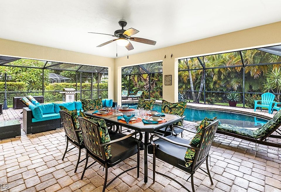 Lanai/Pool/Dock: You will no doubt spend most of your time by the pool! The pool area is private and relaxing, making day or night outdoor lounging a bliss. This Villa features an electric-heated pool with Western exposure. You have plenty of seating available! There is a dining table with room for 6 guests, and then a separate seating area. There are also sun loungers to sit by the pool. The propane grill is available for you to use during your stay. This home also has a pack n' play, highchair, and bicycles.