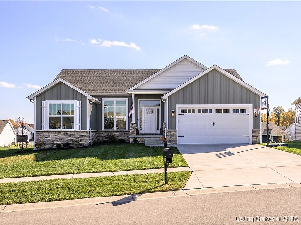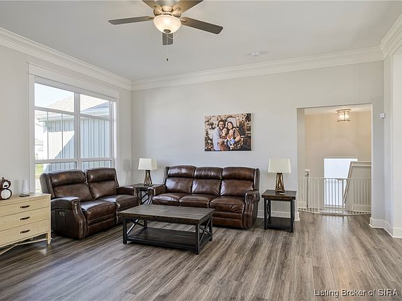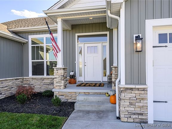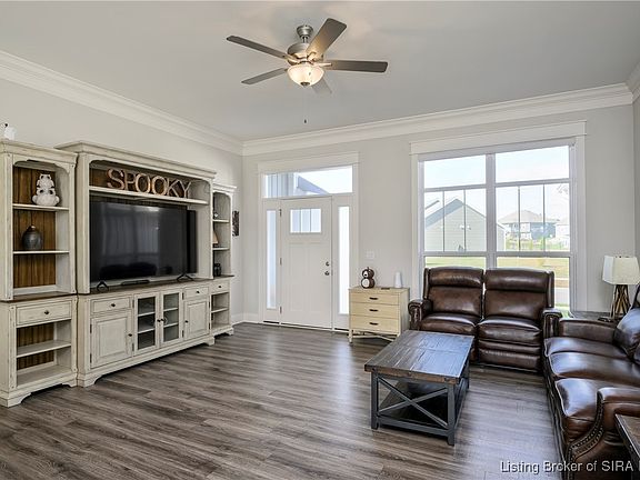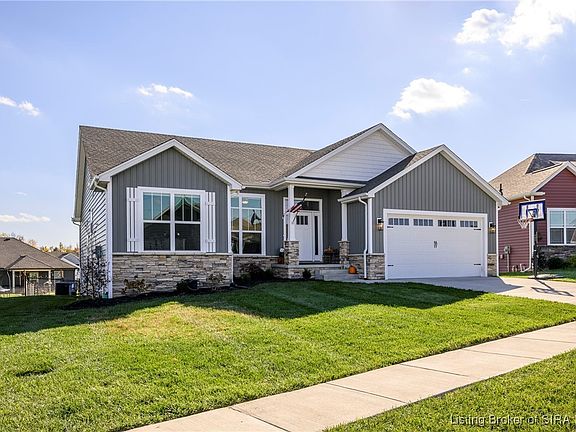 Welcome to this like-new ranch with a finished daylight basement (built in 2022), offering modern living and exceptional space! The main level features a sought-after split bedroom floor plan and open-concept living. The home boasts 4 bedrooms and 3 full baths. Spacious living room with 10' ceilings open to the kitchen, offering a breakfast bar, an island, granite countertops, pantry and all stainless steel kitchen appliances will remain. Master suite offers a master bath, new tile floor Oct. 2025 with double sinks, tiled shower, and a walk-in closet. Lower level includes a large family room with 8' ceilings, a bright full, daylight window, a 4th bedroom with a full window, full bath and a 19.5 X 11.5 unfinished section ready for your ultimate theater room, office or flex room. But the appeal doesn't stop there! Step outside to a beautifully appointed backyard. The nice-sized yard is fully fenced. Enjoy summer evenings and weekend cookouts on the spacious deck or gather friends around the impressive rock patio. This property provides the perfect balance of comfort, style, and year-round indoor/outdoor enjoyment! On top of everything this home has to offer, it's located in the desirable Waters of Millan in Sellersburg, featuring a pool and clubhouse. Silver Creek School District and only 3 miles to I-65!