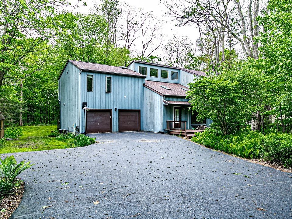 Cool contemporary home tucked into the woods. Expect to be impressed as you walk through your front door to a great room with vaulted ceilings, 2 window seats and wood burning fireplace. The back of the house features a kitchen/dining area with wood burning fireplace plus half bath. Sliders takes you out to a deck along the length of the home. Private back yard. Electronic fence included. Upstairs are 4 large bedrooms and 3 full baths. 2nd floor laundry. Hardwood floors throughout. Lots of light streaming in. Roof 2019. 5 skylights 2019. Move right in and love your life! ***OWNER will consider RENTING for $3,000 per month immediate availability!*** 2022-07-30